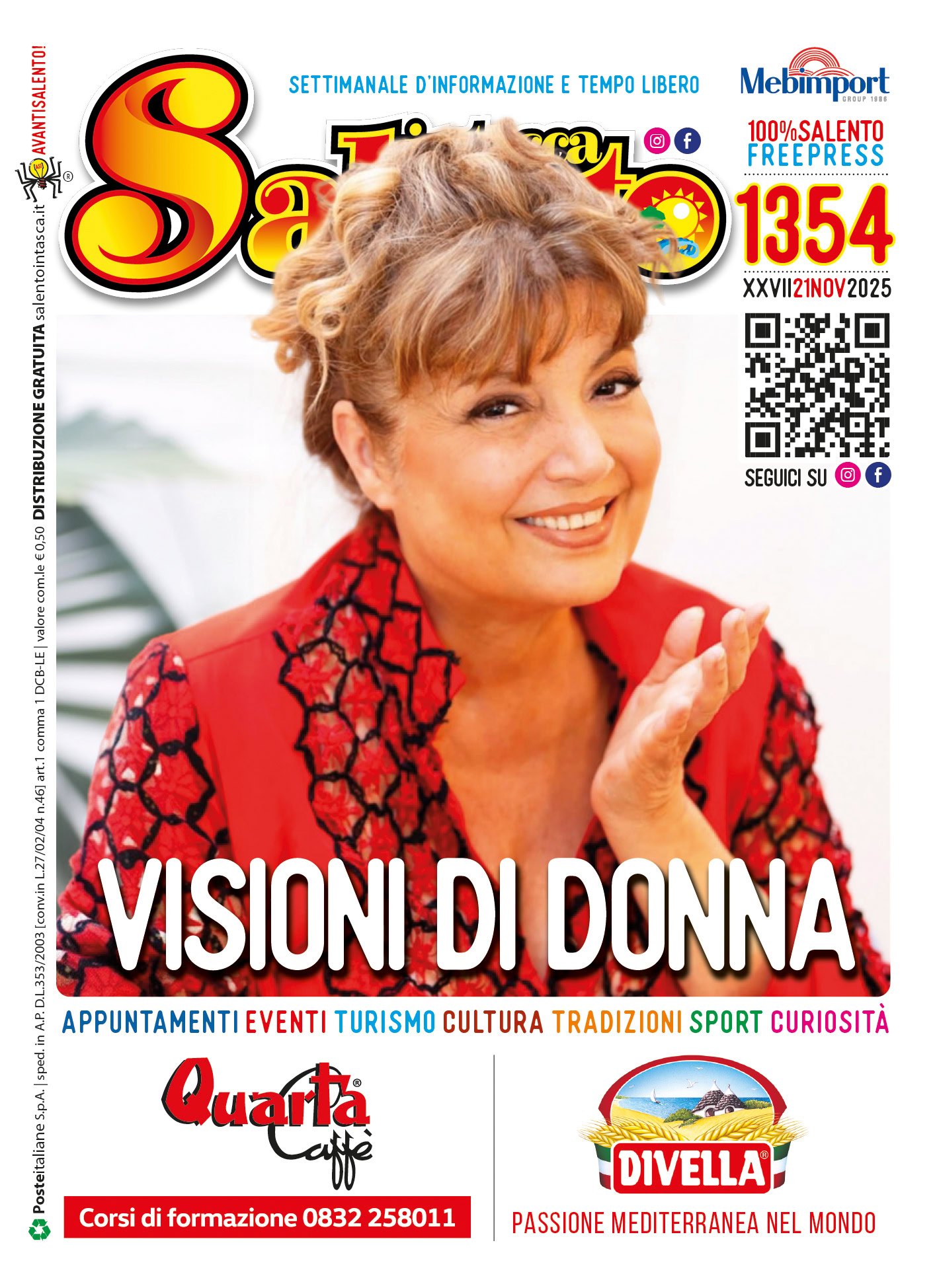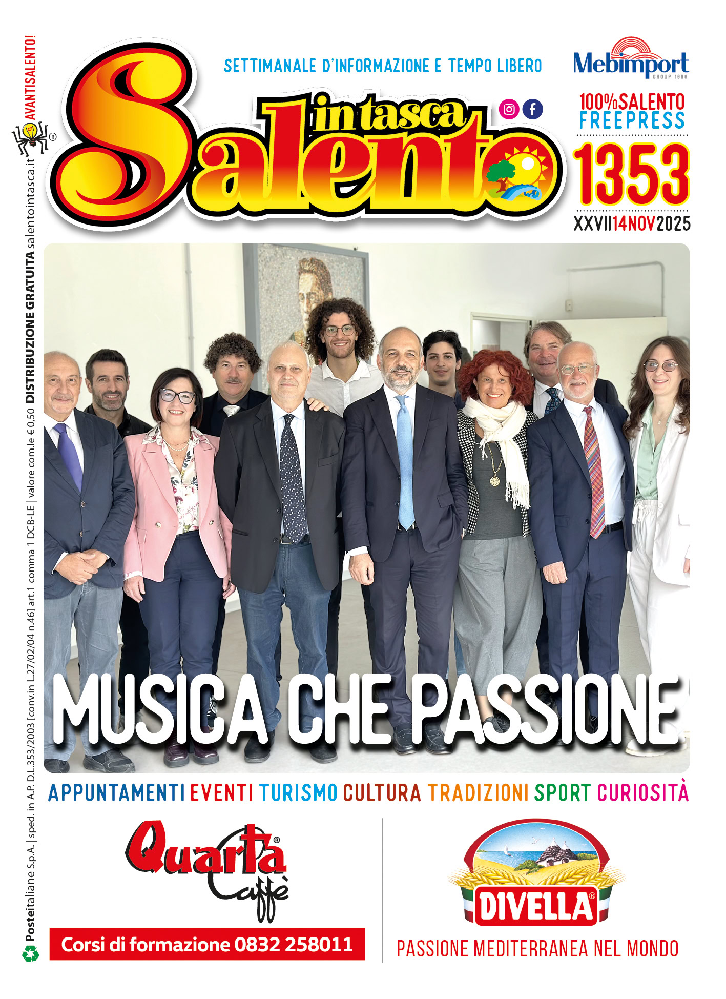 Tanti gli appuntamenti segnalati nelle pagine del settimanale con tutta una serie di eventi in programma fino al prossimo 11 dicembre 2025. 96 pagine dedicate ad una Terra unica capace di stupire in ogni occasione: dai riti della tradizione a quelli dedicati alle sue eccellenze, dalle mostre in giro per il Salento ai concerti dal vivo e alle rassegne culturali. Diversi i viaggi alla scoperta dell’universo vitivinicolo, le mostre, i corsi, le attività formative e tanto altro ancora. In chiusura le rubriche dedicate agli indirizzi dei locali di svago, divertimento e gusto, quella degli auguri con le foto più simpatiche giunte in redazione, e infine, i consigli delle stelle.