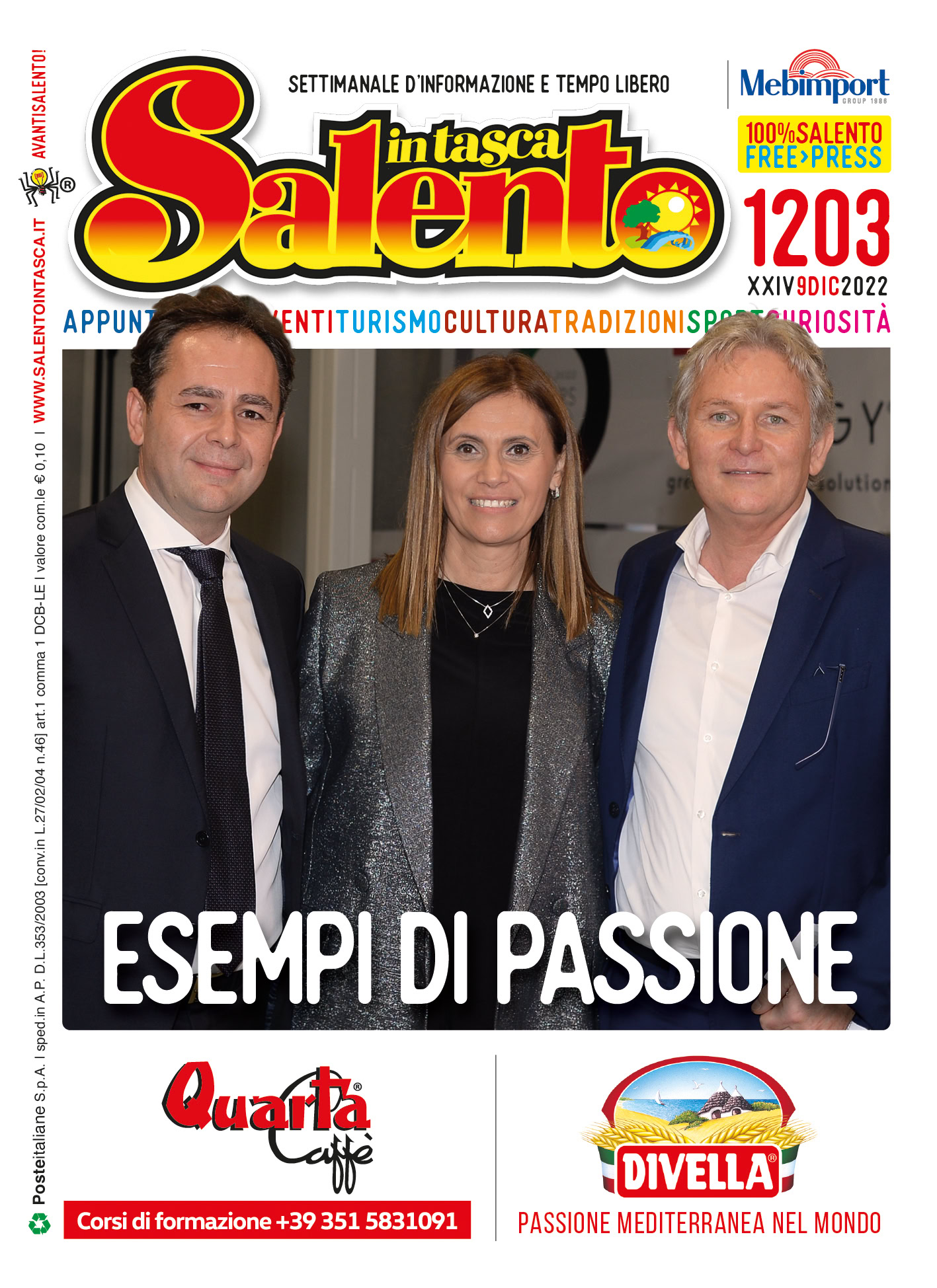 “Gusto e identità”. La copertina è dedicata ad Agrogepaciok, il Salone internazionale della gelateria, pasticceria, cioccolateria e dell’artigianato agroalimentare che si è svolta a Lecce. Un’appuntamento che ha riscosso un grande successo di pubblico e di critica, con tantissimi visitatori che hanno affollato il quartiere fieristico Lecce Fiere. Cinque giorni di incontri, degustazioni, competizioni e momenti di approfondimento, dedicati ai professionisti del settore, per conoscere le ultime tendenze, dalle materie prime alle attrezzature ed accessori. Un’occasione di confronto con alcuni dei più rinomati maestri ed esperti dei settori dolciario, gelateria, caffetteria, pizzeria, panificazione e ristorazione. Tante le novità che hanno animato l’edizione 2022 della rassegna ideata e realizzata dall’Agenzia Eventi Marketing & Comunicazione di Carmine Notaro: accanto all’area espositiva di 10mila metri quadrati, il Fuori Salone Un mare di Cacao - I Cioccolati del Mediterraneo allestito a San Francesco della Scarpa a Lecce. Un appuntamento dedicato al buono ed al saporito, utile alla crescita del territorio che ha registrato la presenza dello chef stellato Michelin Simone Nardoni che i redattori del periodico salentino hanno incontrato nell’occasione. Tanti gli appuntamenti segnalati nel settimanale con tutta una serie di eventi in programma fino al prossimo 24 novembre. 80 pagine dedicate ad una Terra unica capace di stupire in ogni occasione: dai riti della tradizione a quelli dedicati alle sue eccellenze, dalle mostre in giro per il Salento ai concerti dal vivo e alle rassegne culturali. Diversi i viaggi alla scoperta dell’universo vitivinicolo, le mostre, i corsi, le attività formative e tanto altro ancora. In chiusura le rubriche dedicate agli indirizzi dei locali di svago, divertimento e gusto, quella degli auguri con le foto più simpatiche giunte in redazione, e, in chiusura, i consigli delle stelle. Leggi o scarica il magazine su #salentointasca #avantisalento #freepress #salentointascaofficial #salentoeventi #salento http://www.salentointasca.it