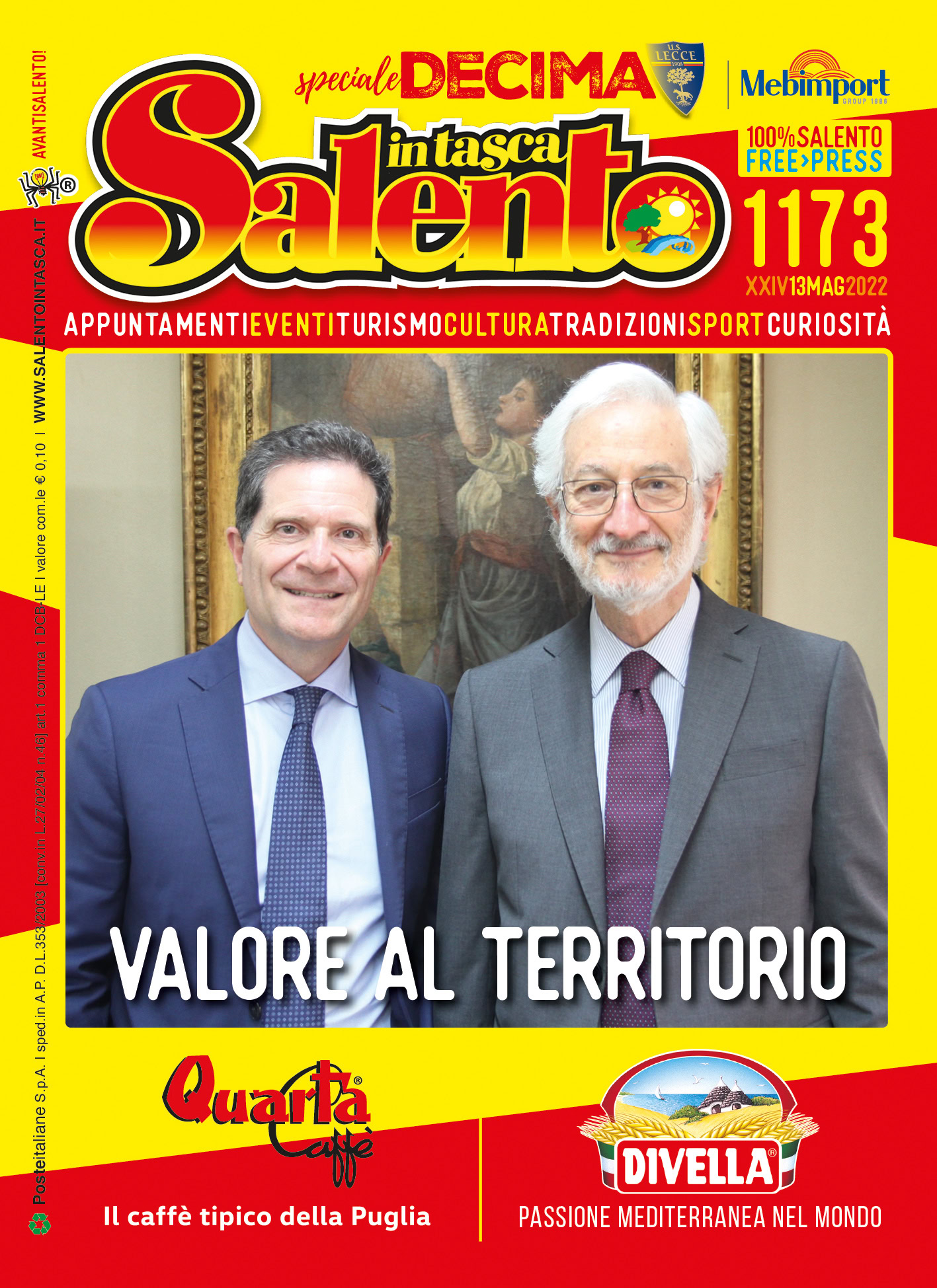 “Al fianco dei cittadini” è il titolo del nuovo numero di Salento in Tasca, la guida gratuita al bello ed al buono che il territorio propone ogni giorno. Piazza Duomo a Lecce ospiterà l’annuale festa dell’Arma dei Carabinieri. La ricorrenza, in programma il prossimo 6 giugno, commemora la data in cui la Bandiera dell’Arma fu insignita della prima medaglia d’oro al valor militare per la partecipazione dei Carabinieri alla prima guerra mondiale. Una storia, quella della Benemerita, intrinsecamente legata al cammino sociale, culturale, politico ed economico che ha forgiato l’identità nazionale. L’Arma si caratterizza per la sua presenza attenta e sensibile alle istanze della società in costante trasformazione: un lavoro impegnativo, grazie al quale, nel corso di questi primi 208 anni dalla fondazione, i Carabinieri hanno saputo conquistare la fiducia dell’intera comunità nazionale. Alla vigilia dell’importante evento, i redattori del periodico salentino hanno incontrato il comandante provinciale, il colonnello Paolo Dembech. Tanti gli eventi segnalati nel settimanale con tutta una serie di appuntamenti in programma fino al prossimo 9 giugno. 96 pagine dedicate ad una Terra unica capace di stupire in ogni occasione: i riti della tradizione e quelli dedicati alle sue eccellenze, le mostre in giro per il Salento, i concerti dal vivo e le rassegne, gli eventi allestiti nell’ambito delle diverse rassegna culturali e di spettacolo, i viaggi alla scoperta dell’universo vitivinicolo, e tanto altro ancora. In chiusura le rubriche dedicate a tutti gli indirizzi dei locali di svago e divertimento, quella degli auguri con le foto più simpatiche giunte in redazione, e, in chiusura, i consigli delle stelle. Leggi o scarica il magazine su #salentointasca #avantisalento #freepress #salentointascaofficial #salentoeventi #salento