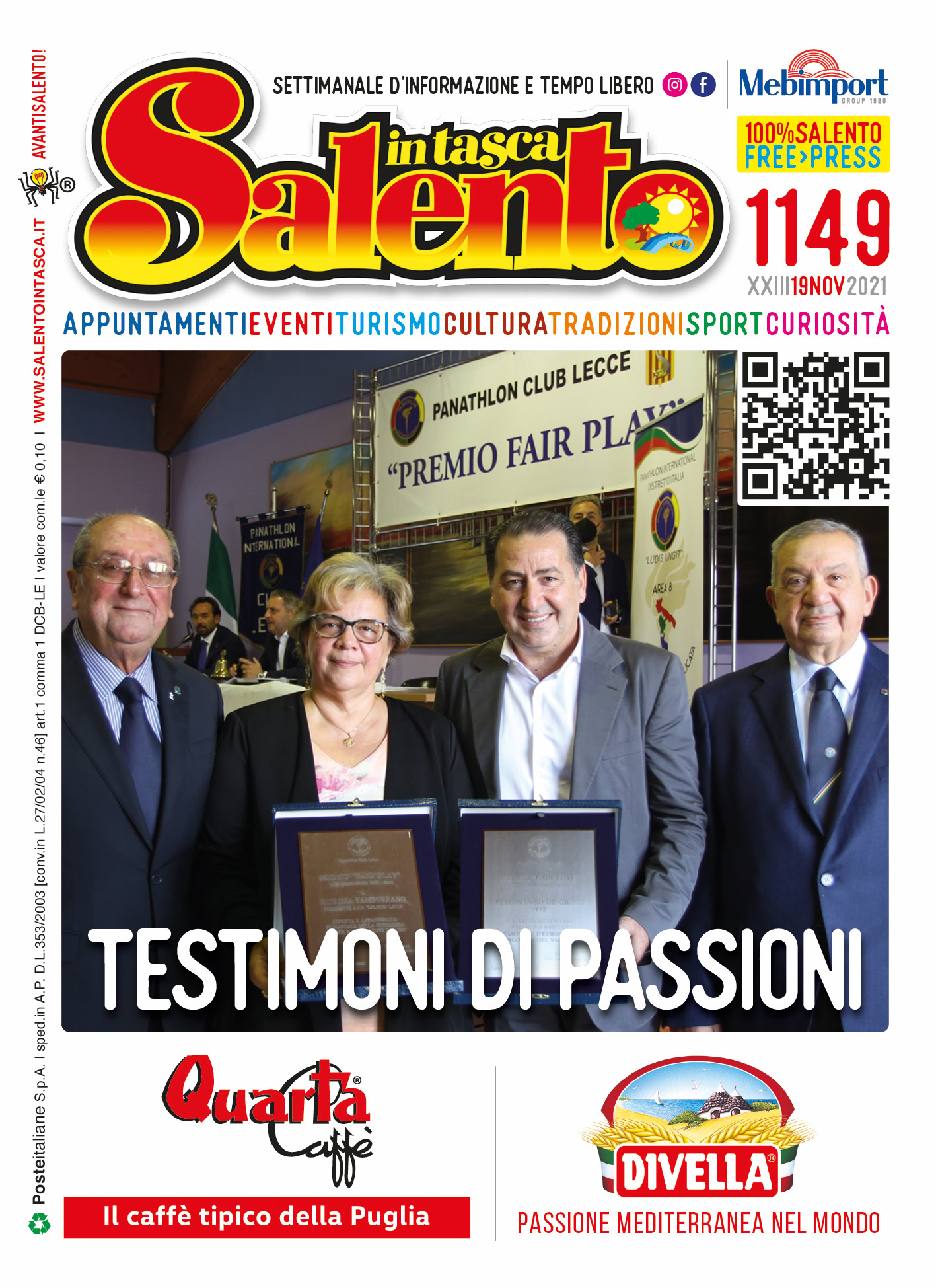 “Saper fare squadra” è il titolo del nuovo numero di Salento in Tasca, la guida gratuita al bello ed al buono che il territorio propone ogni giorno. Determinazione, passione e un pizzico di follia trasformano i sogni in realtà: ne sanno qualcosa gli studenti dell’Istituto Vespucci di Gallipoli che, sostenuti dalla dirigente Paola Apollonio, dai docenti Massimo De Matteis, Claudio Imperiale, Edoardo Minerva e Maurizio Rizzello e dalla rispettive famiglie, hanno solcato le acque dell’Adriatico per partecipare all'edizione 2021 della Barcolana di Trieste con la loro imbarcazione Mad Cow. 550 miglia marine (e ritorno) che hanno visto protagonisti Diego Casto, Alessia Corciulo, Gianmarco De Giorgi, Massimo De Matteis, Andrea Distante, Gabriele Gianfreda, Claudio Imperiale, Christopher Latino, Anna Leopizzi, Filippo Maggio, Daniele Marsiglia, MIchele Mignona, Edoardo Minerva, Samuele Monzillo, Matteo Pando, Agnese Rizzello, Maurizio Rizzello, Giovanni Ruggieri, Rosa Maria Saponaro e Simone Totaro. 96° posto assoluto in regata su 1.350 partecipanti, con condizioni meteo proibitive, per un’esperienza di vita che ha coronato il lavoro fatto a scuola per progettare nei minimi dettagli l’avventura. Un percorso di formazione quello del Vespucci capace di far crescere con armonia e dedizione i propri studenti. I redattori del periodico li hanno incontrati per farsi raccontare il bello di dar vita ad un’esperienza indimenticabile dove l'importante era il saper fare squadra. Tanti gli eventi segnalati nel settimanale con tutta una serie di appuntamenti in programma fino al prossimo 10 dicembre. 96 pagine dedicate ad un Terra unica capace di stupire in ogni occasione: i riti della tradizione e quelli dedicati alle sue eccellenze, le mostre in giro per il Salento, i concerti dal vivo e le rassegne, gli eventi allestiti nell'ambito delle diverse rassegna culturali e di spettacolo, i viaggi alla scoperta dell’universo vitivinicolo, e tanto altro ancora. In chiusura le rubriche dedicate a tutti gli indirizzi dei locali di svago e divertimento, quella degli auguri con le foto più simpatiche giunte in redazione, e, in chiusura, i consigli delle stelle. Leggi o scarica il magazine su http://www.salentointasca.it #salentointasca #avantisalento #freepress #salentointascaofficial #salentoeventi #salento