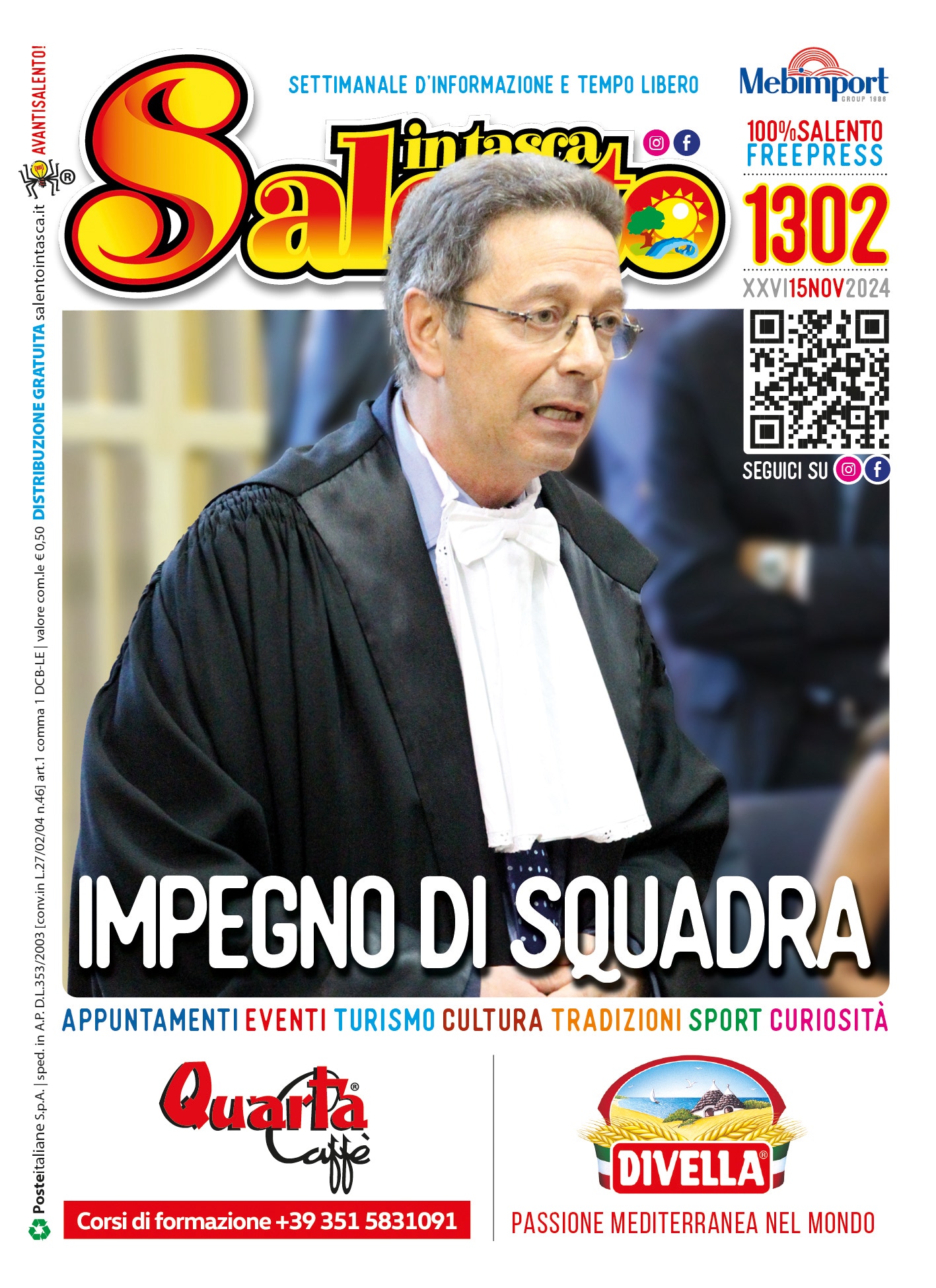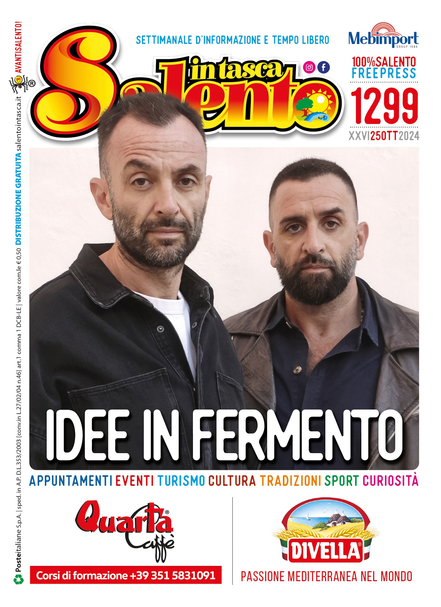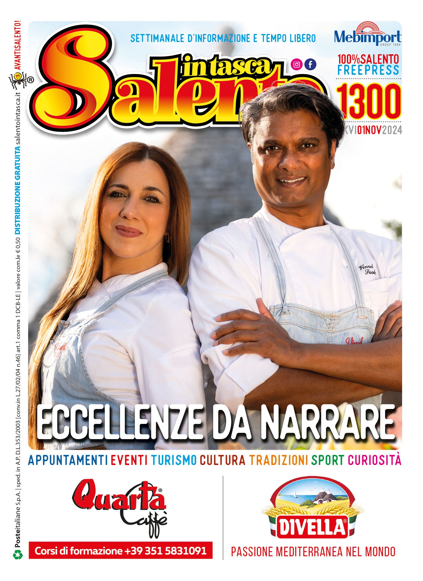Tanti gli appuntamenti segnalati nelle pagine del settimanale con tutta una serie di eventi in programma fino al prossimo 28 novembre. 96 pagine dedicate ad una Terra unica capace di stupire in ogni occasione: dai riti della tradizione a quelli dedicati alle sue eccellenze, dalle mostre in giro per il Salento ai concerti dal vivo e alle rassegne culturali. Diversi i viaggi alla scoperta dell’universo vitivinicolo, le mostre, i corsi, le attività formative e tanto altro ancora.